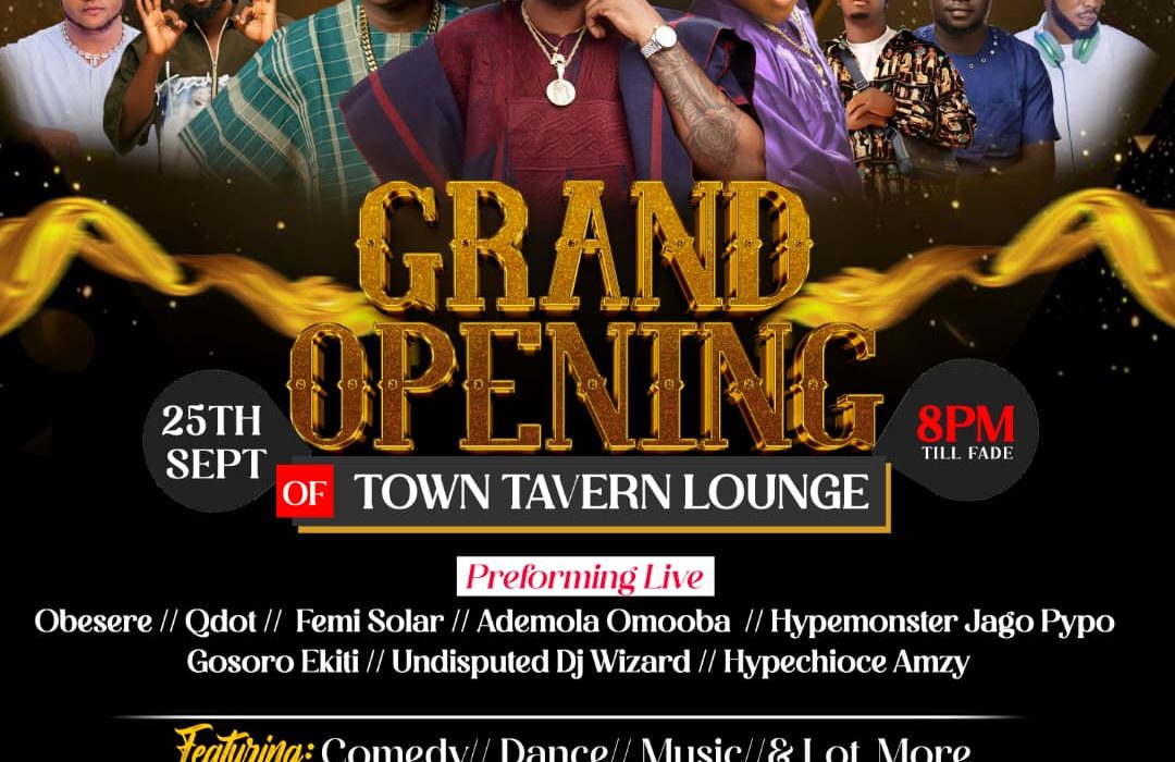 Ado-Ekiti is about to experience an unforgettable night of music, comedy and fun as the brand-new Town Tavern Lounge officially opens its doors on Thursday, September 25th, at 8 PM.